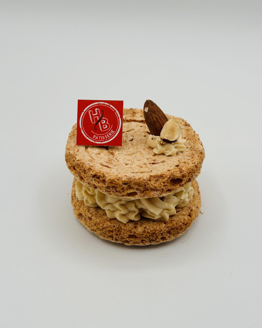 Fond meringué noisettes, crème praliné, éclats de nougatine.